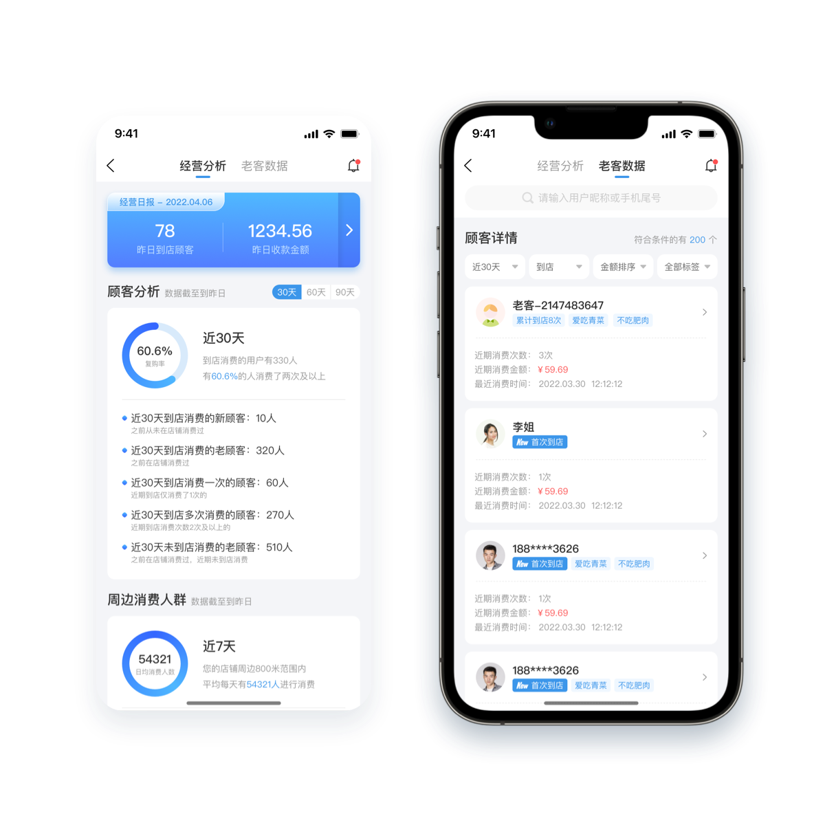 涵盖顾客分析和周边流量分析两大模块,经营数据实时掌握,助力商户提升自身经营效益